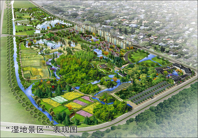 该园区规划依据景观的生态设计原则,尊重场地的现状特征,突出景区特色,营造一种人与自然和谐共荣的氛围。规划中注意设计结合自然,延续乡土景观特征;合理布局,满足不同层次游客的需求;强化旅游项目的策划,保证景区的旅游经济效益。