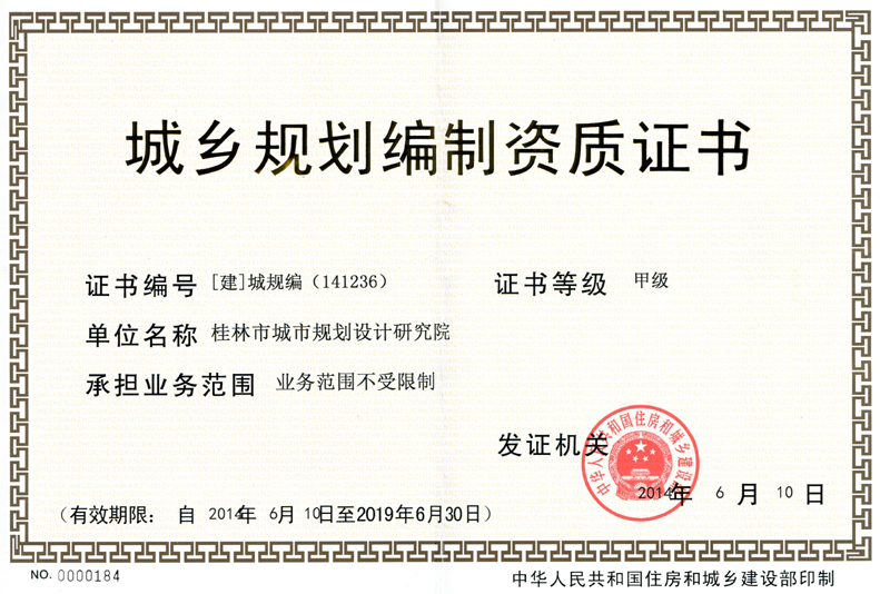城乡规划:规划甲级,可承担的业务范围不受限制。