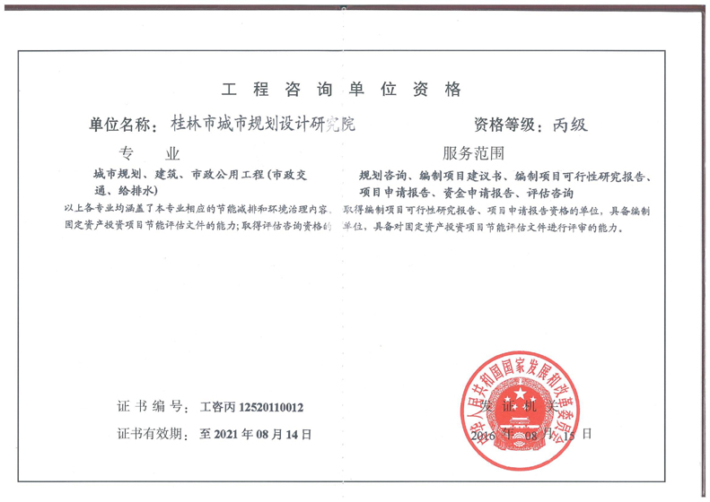 工程咨询:工程咨询丙级,可涉及城市规划、建筑、市政公用工程(市政交通、给排水)专业;可承担规划咨询、编制项目建议书、编制项目可行性研究报告、项目申请报告、资金申请报告、评估咨询。
