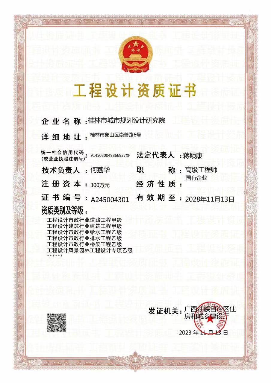 市政:市政行业道路工程甲级、市政行业(给水工程、排水工程、桥梁工程)专业乙级、风景园林工程设计专项乙级。